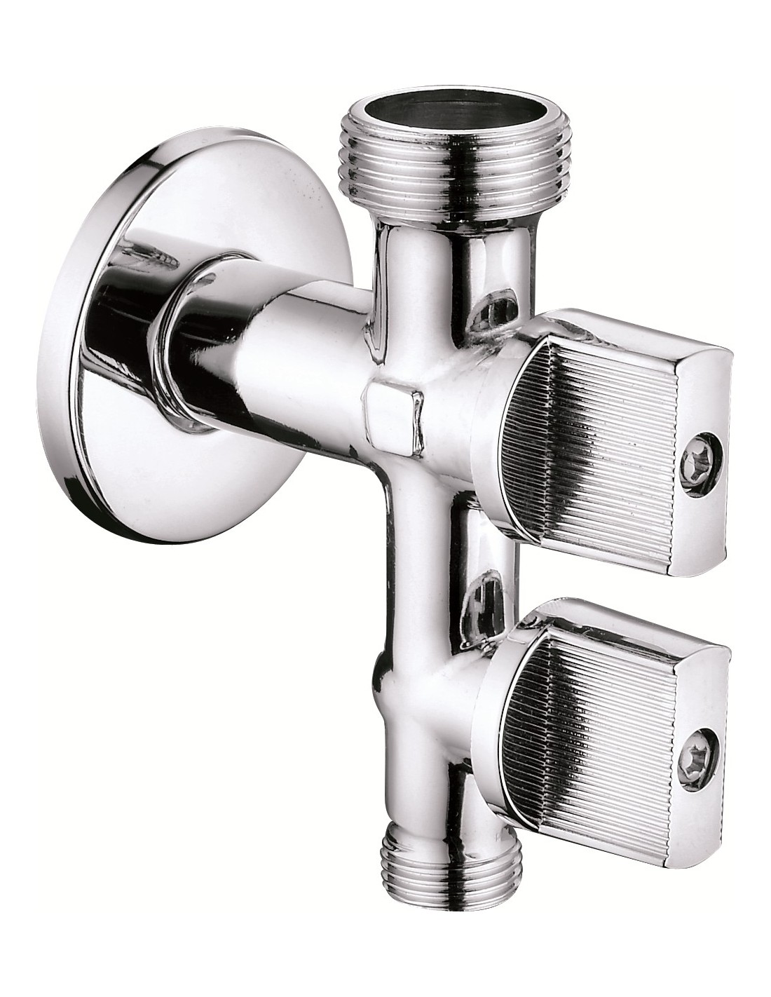 Válvula lavadora-lavabo vertical 1/2"x3/4"x3/8" (mando metal)